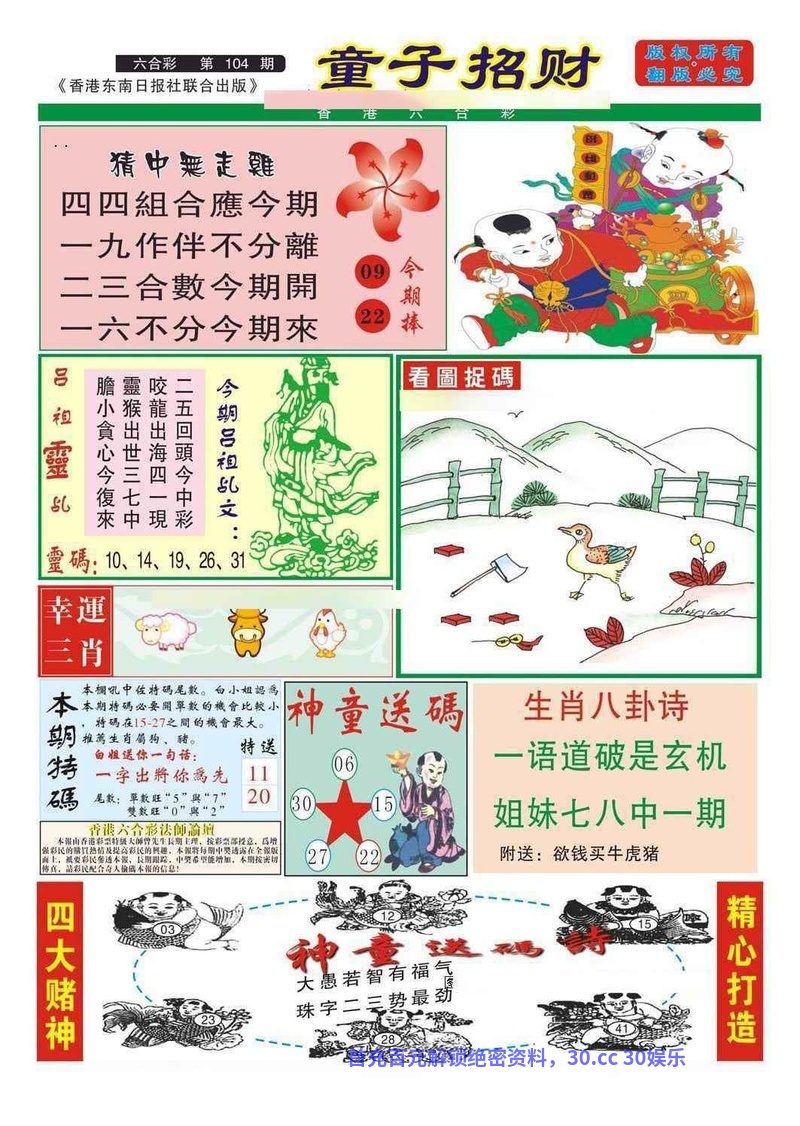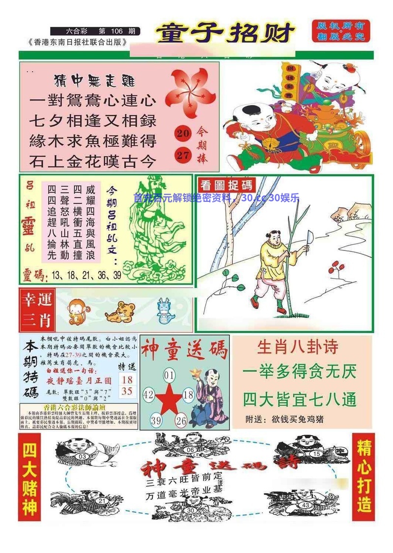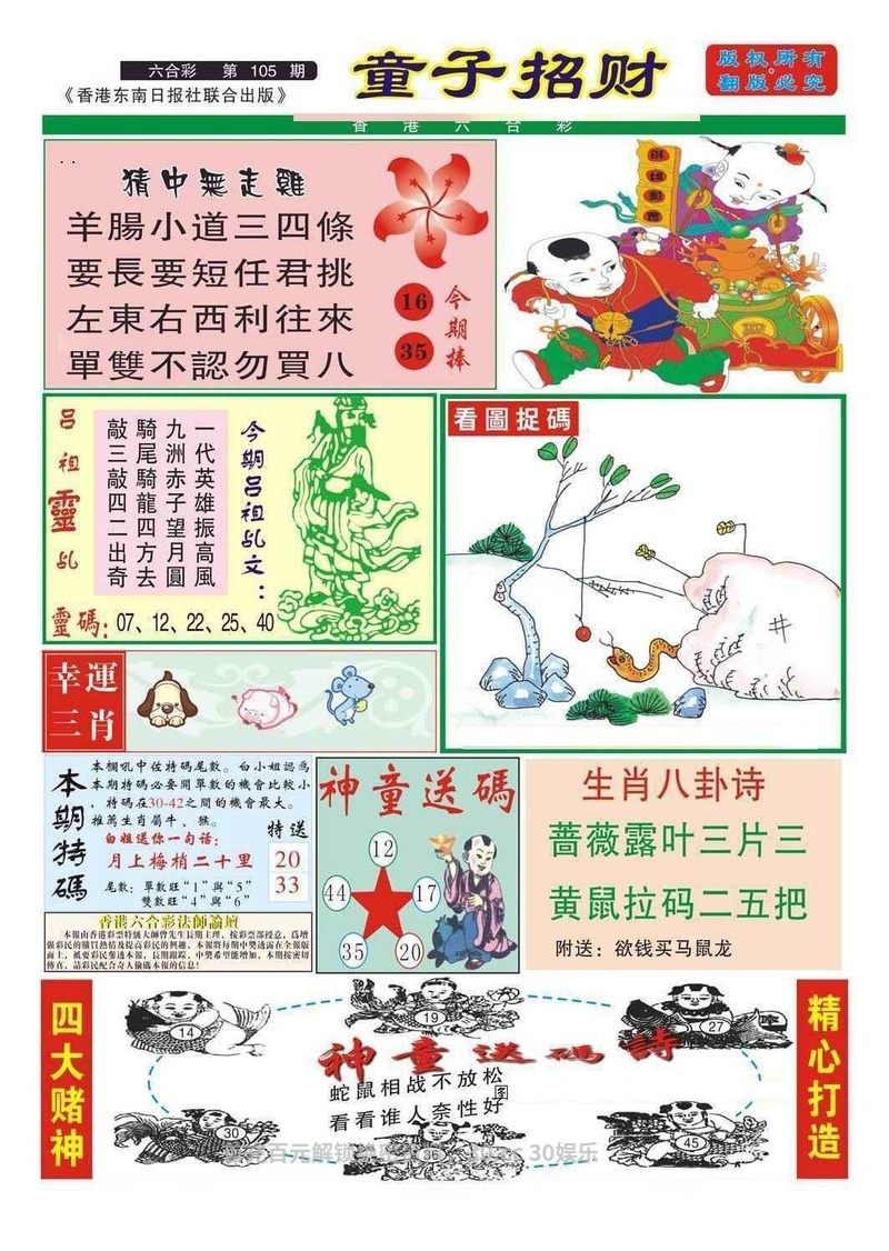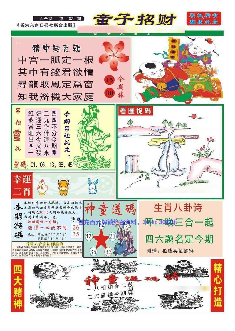 108期:心水报正版/港彩商报精简/东方心经/特码生肖诗/四字肖诗